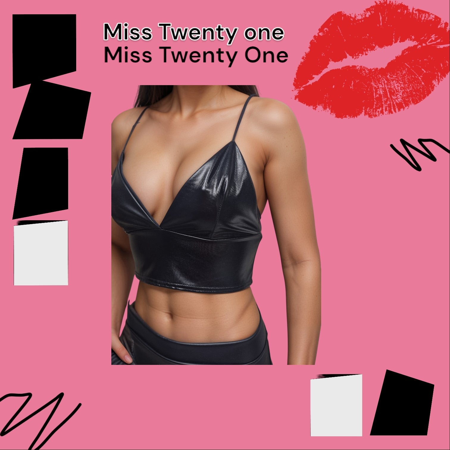 Women's Girls Chocolate Brown Faux PU Leather look Black Bralette Womenswear